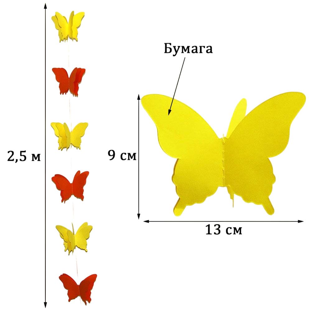 Гирлянда "Бабочки" 13х9см 2,5м, желтый+оранжевый