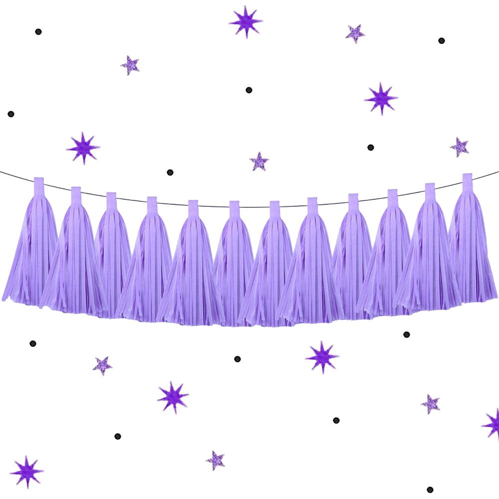 Гирлянда тассел 12 кисточек по 10 листов, светло-сиреневый