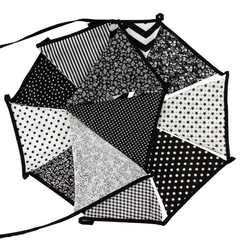 Гирлянда состоит из 12 флажков, расстояние между флажками 6 см, общая длина составляет 4 м.
