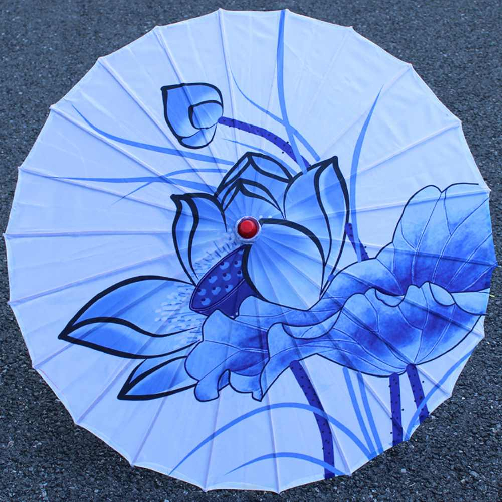 Китайские тканевые зонтики Гжель 82х54см, №8