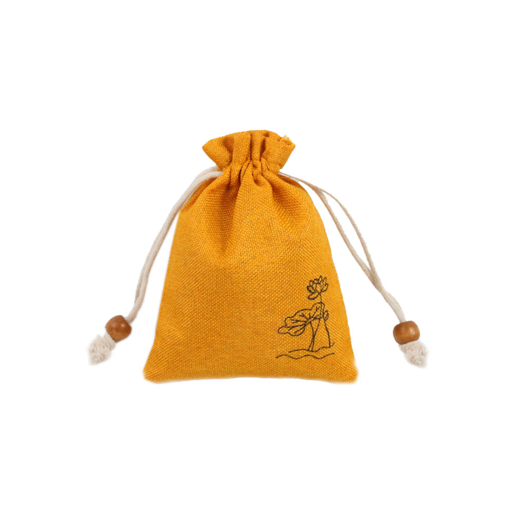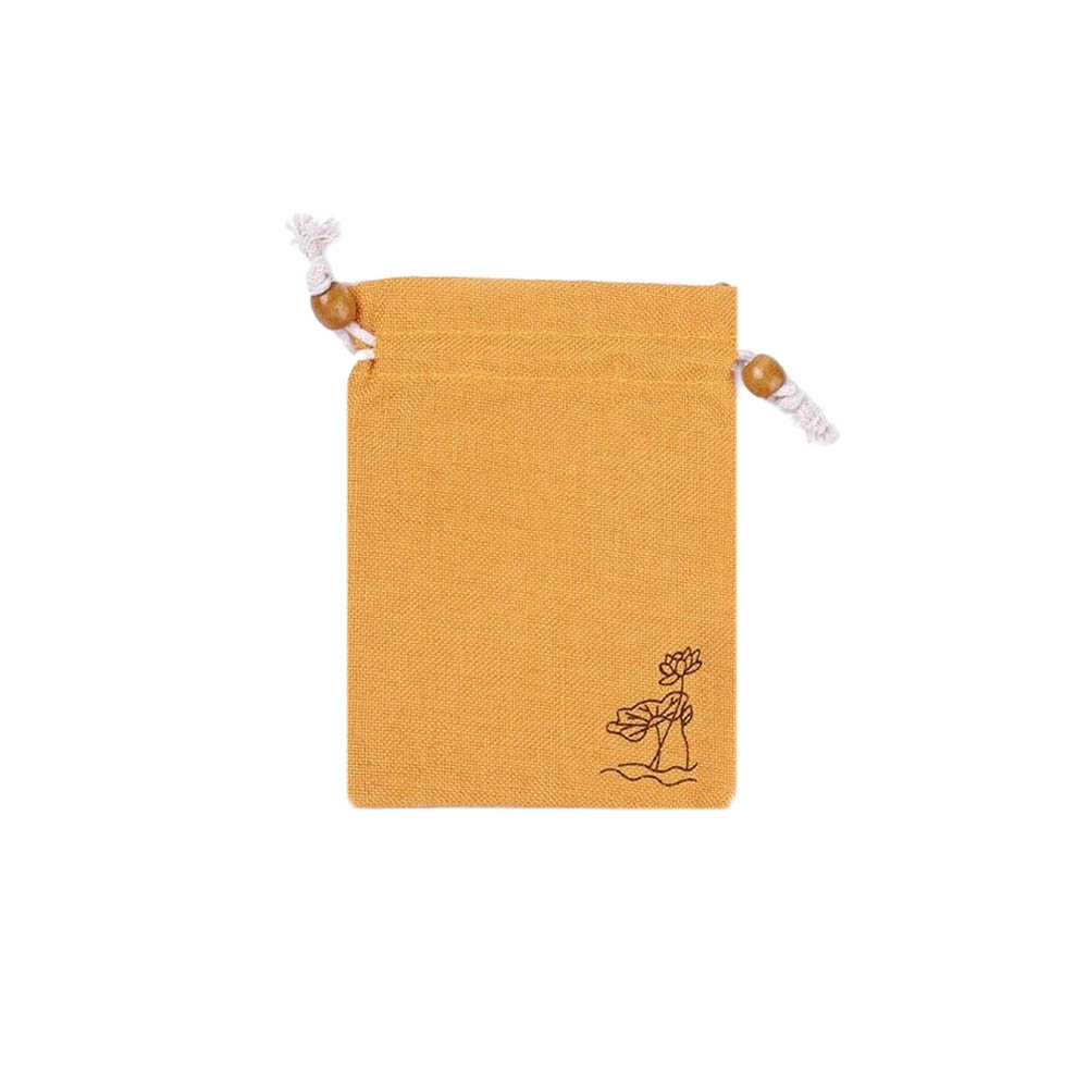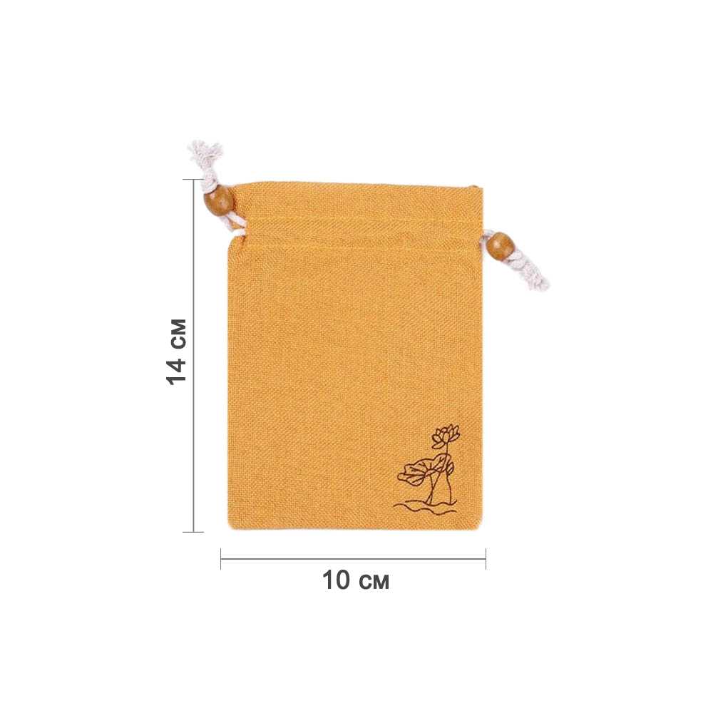 Мешочек из искусственного льна с орнаментом 10х14 см, желтый