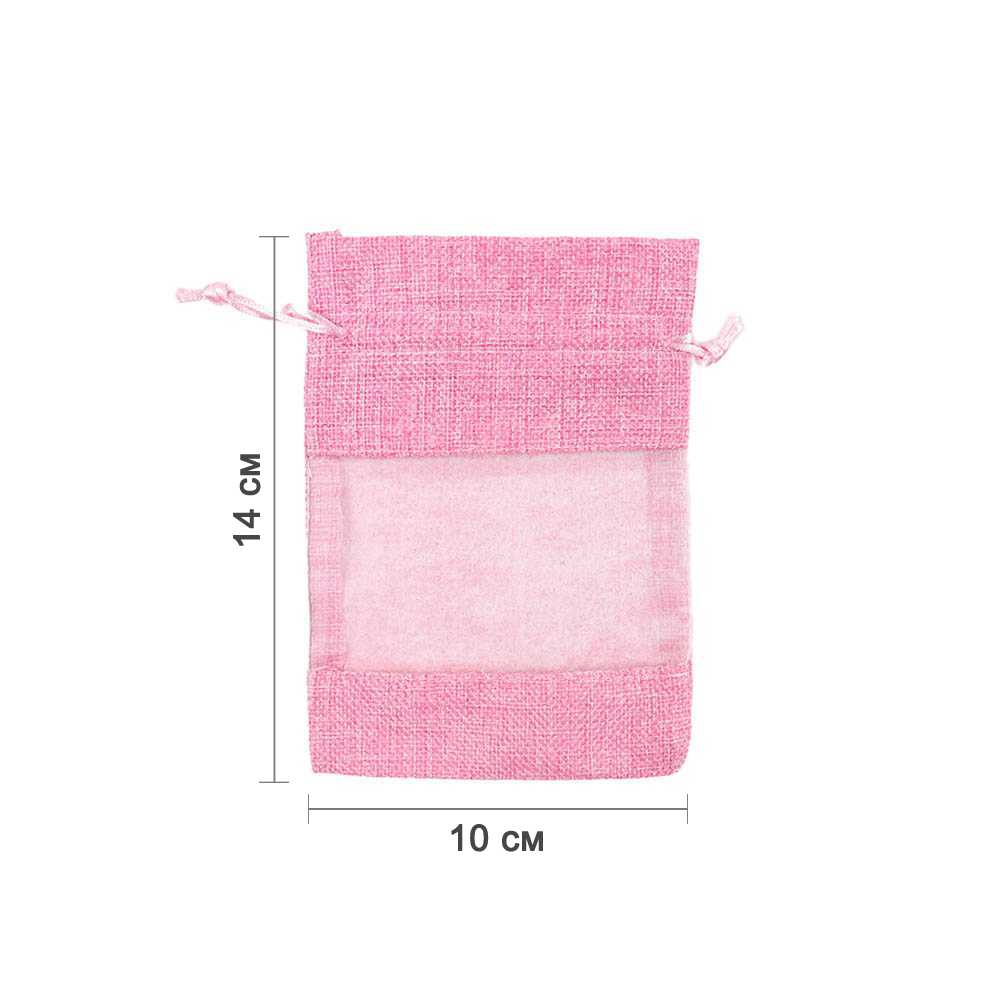 Мешочек из мешковины и органзы 10х14 см розовый