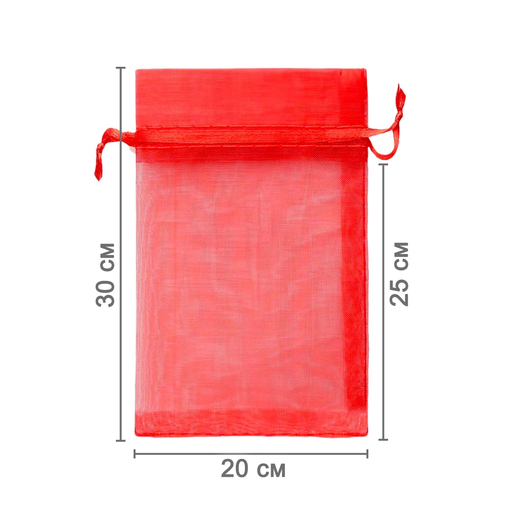 Мешочек из органзы 20 х 30 см — стильный аксессуар для упаковки средних и крупных предметов. Полупрозрачная ткань подчёркивает содержимое и придаёт аккуратный вид.