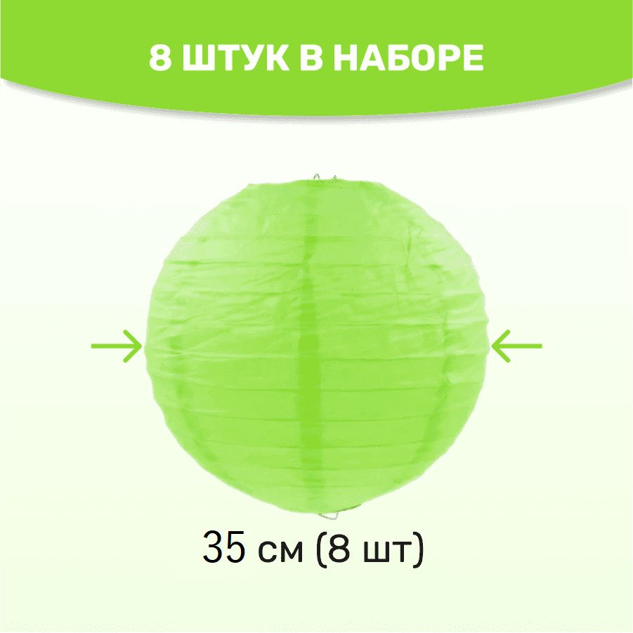 Комплект подвесные фонарики 35 см х 8 шт, салатовый
