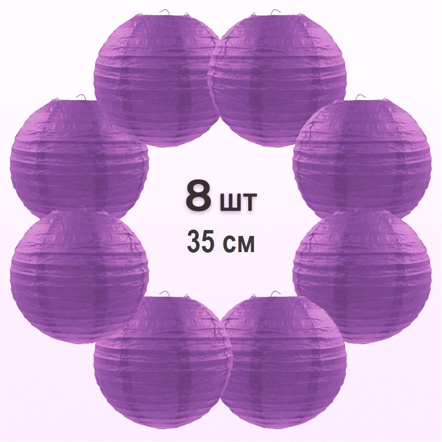 Комплект подвесные фонарики 35 см х 8 шт, сиреневый