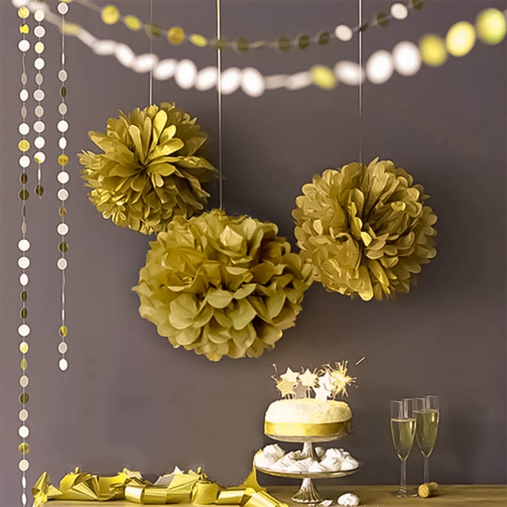 Золотой бумажный помпон диаметром 50 см — стильное и лёгкое украшение для праздников, фотозон, витрин и интерьера. Отлично подойдёт для дней рождений, свадеб, вечеринок и тематических мероприятий.