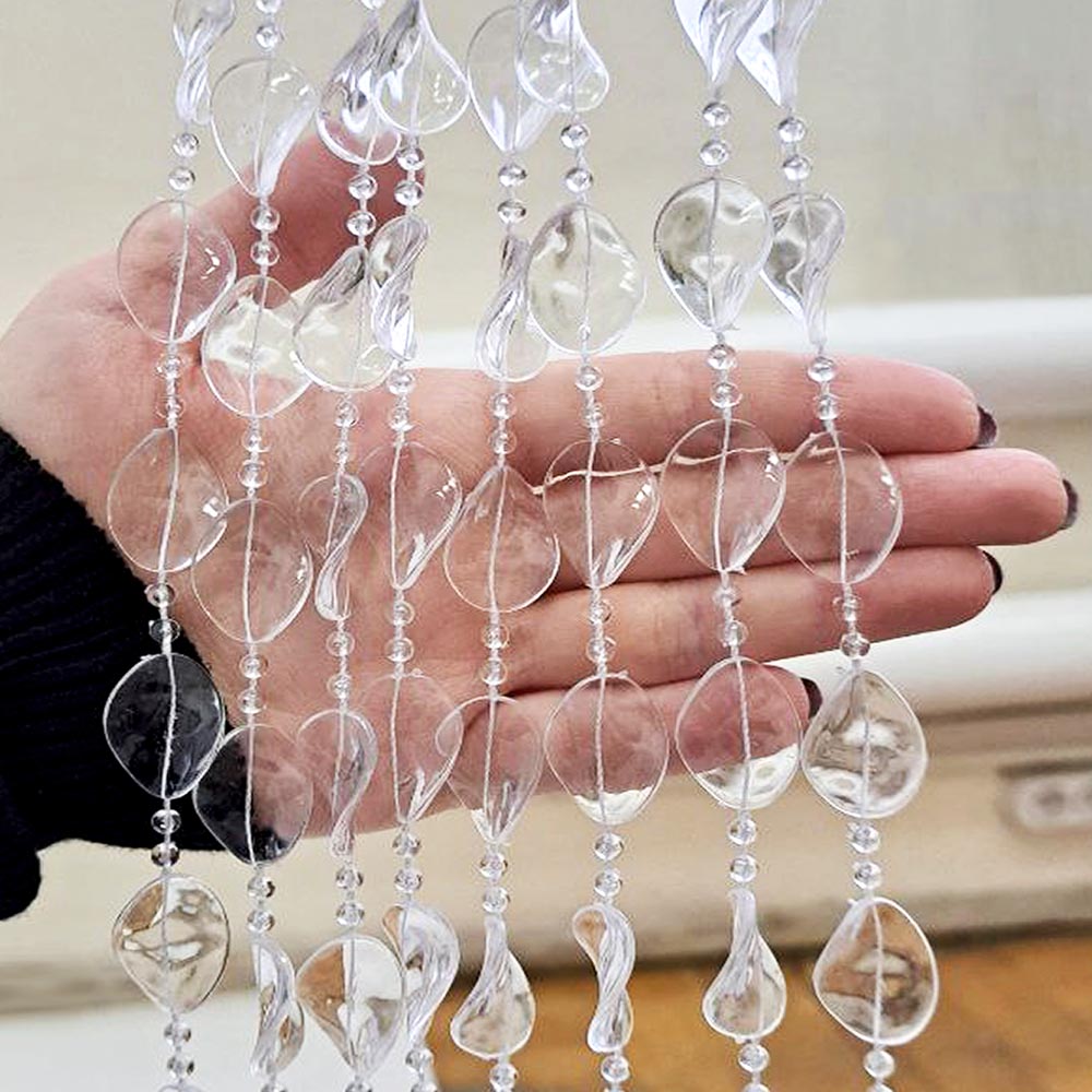 Празддничное оформление - можно собрать из бусин шторы или украсить люстры.