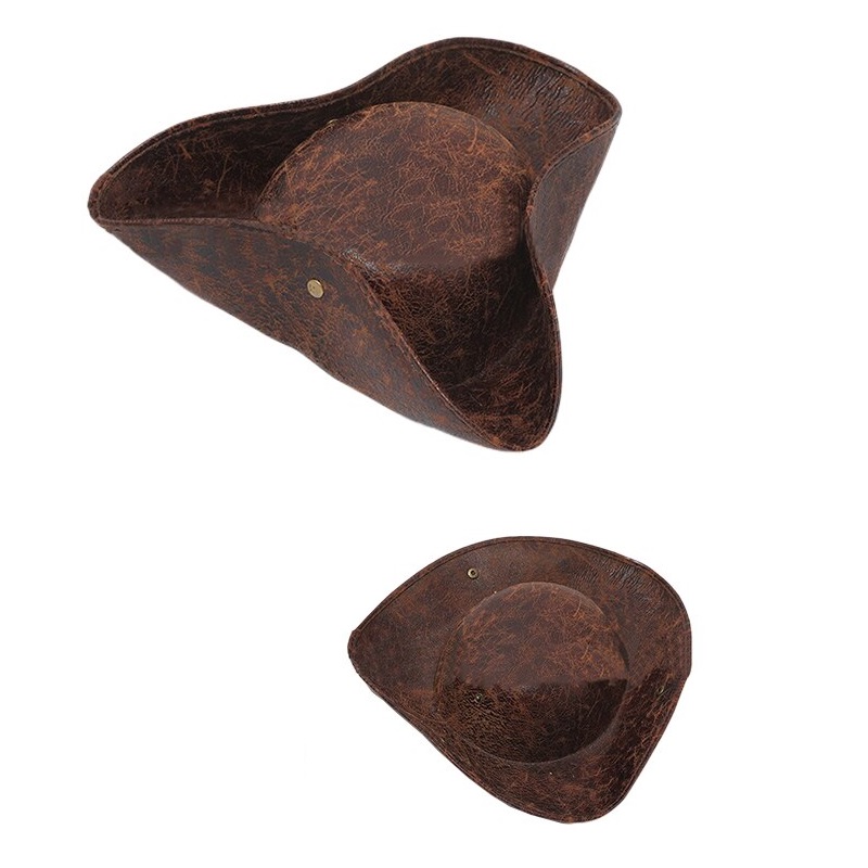 Шляпа Пирата треуголка на кнопке, коричневый